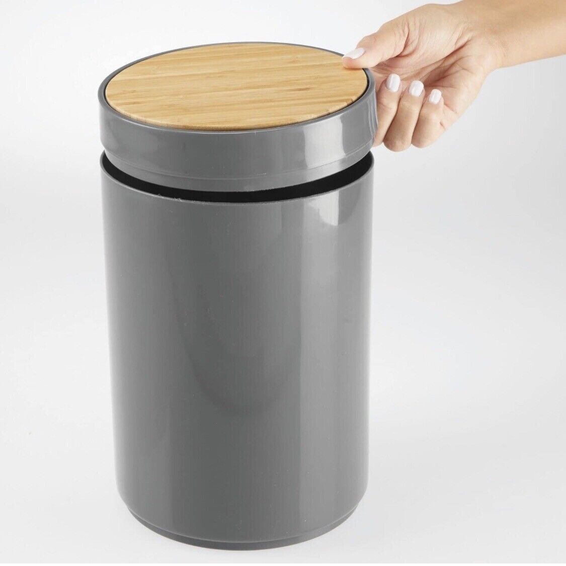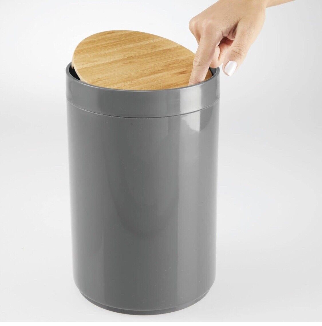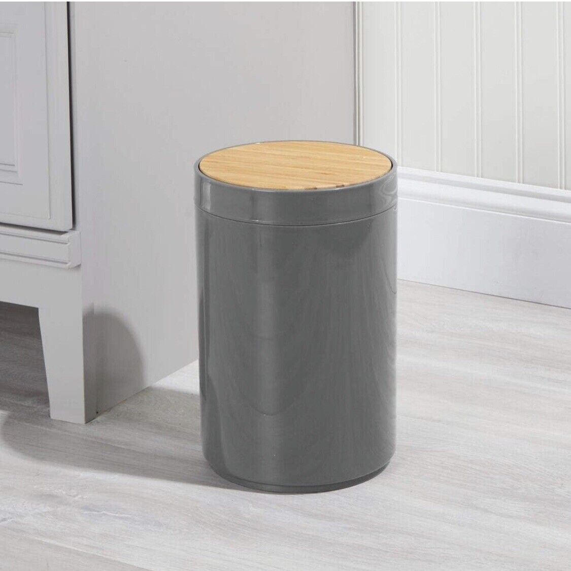NATURAL DESIGN: This bin with swing lid combines shiny grey plastic with a tranquil and natural bamboo finish. The unique design will fit seamlessly with any modern bathroom design look.